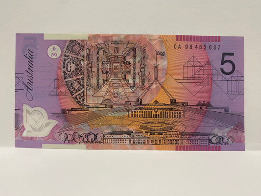 1998 $5 POLYMER BANKNOTE MCFARLANE/EVANS UNCIRCULATED