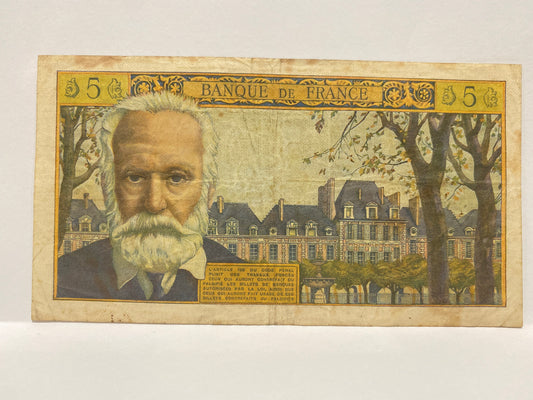1960 FRANCE 5 NOUVEAUX FRANCS VICTOR HUGO PORTRAIT CIRCULATED
