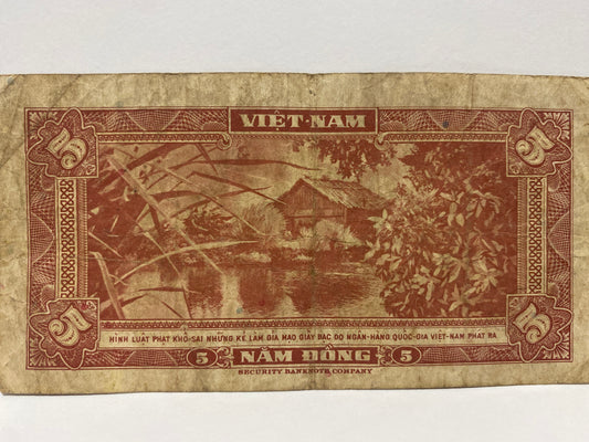 1955 SOUTH VIETNAM 5 DONG PAPER BANKNOTE CIRCULATED