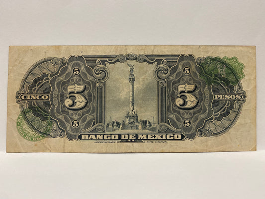 1959 MEXICO FIVE PESO PAPER BANKNOTE CIRCULATED