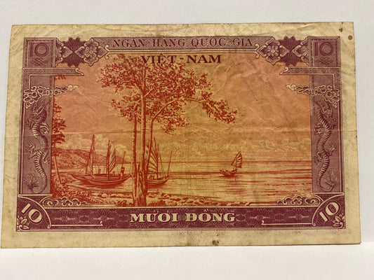 1955 VIETNAM 10 DONG PAPER BANKNOTE CIRCULATED