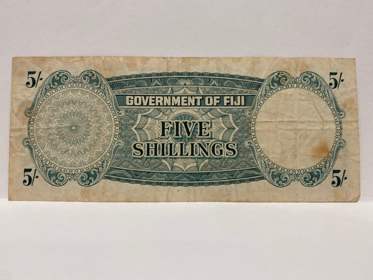 1957 GOVERNMENT OF FIJI 5 SHILLINGS PAPER BANKNOTE CIRCULATED
