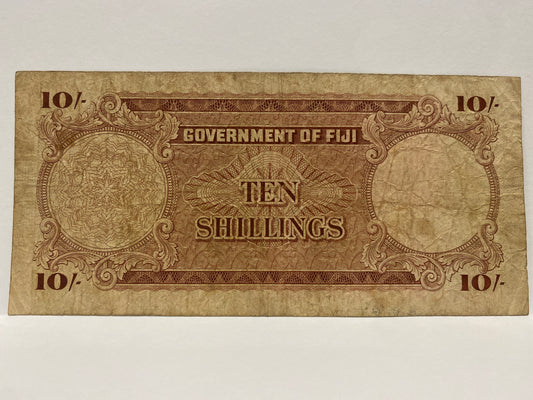 1957 GOVERNMENT OF FIJI 10 SHILLINGS PAPER BANKNOTE CIRCULATED