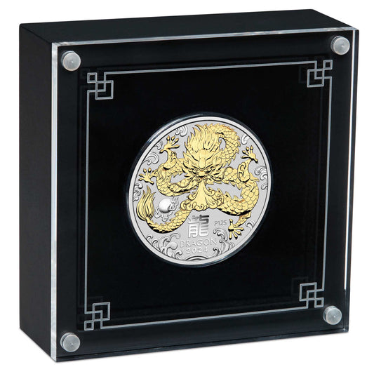 Australian Lunar Series III 2024 Year of the Dragon 1oz Silver Gilded Coin
