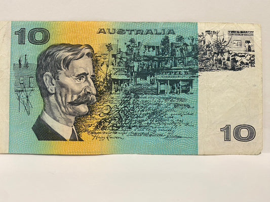 1989 $10 PAPER BANKNOTE FRASER/HIGGINS CIRCULATED