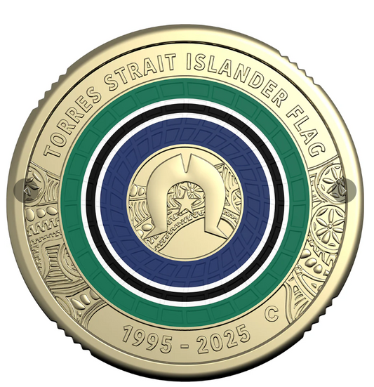 2025 2 dollar Torres Strait Islander Flag 'C' Mintmark Coloured Uncirculated Coin on card