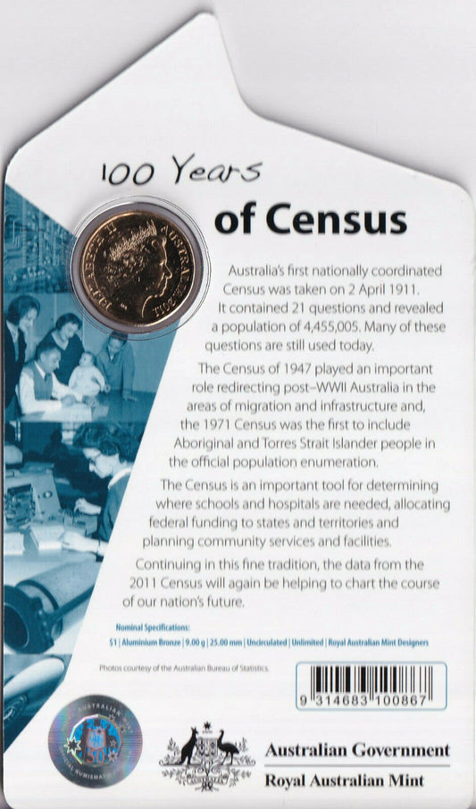 2011 $1 100 Years of Census uncirculated carded coin