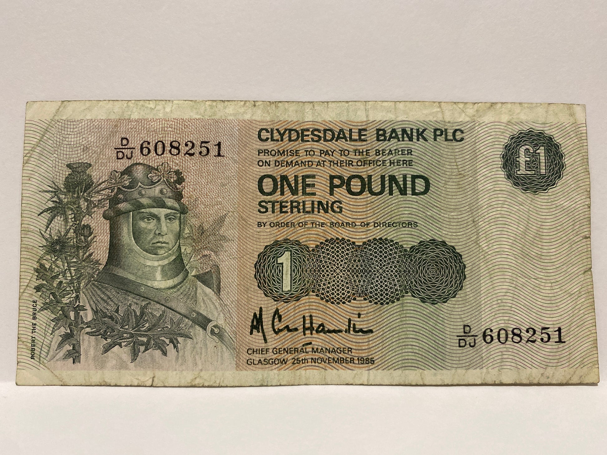 1986 CLYDESDALE BANK OF SCOTLAND ONE POUND PAPER BANKNOTE CIRCULATED