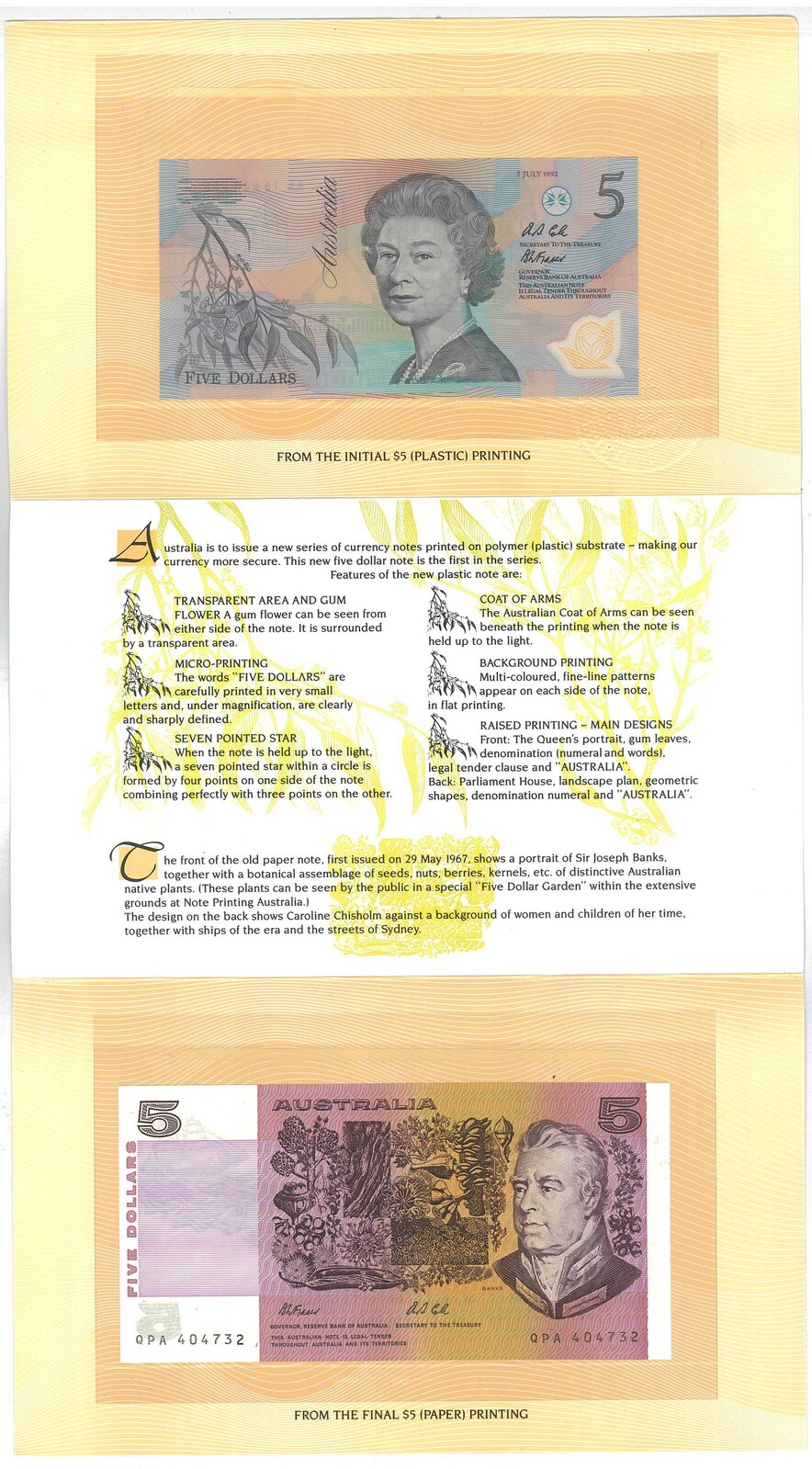 1992 NOTE PRINTING AUSTRALIA FIRST & LAST NOTE FOLDER $5