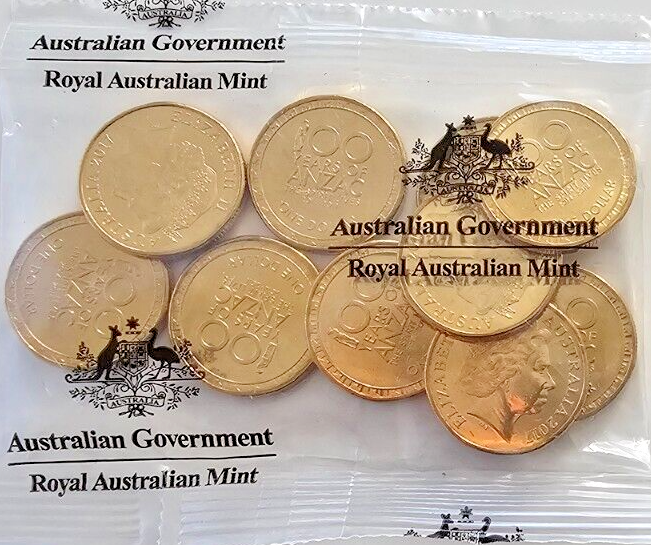 .2017 100 YEARS OF ANZAC $1 RAM BAG 10 UNC COINS