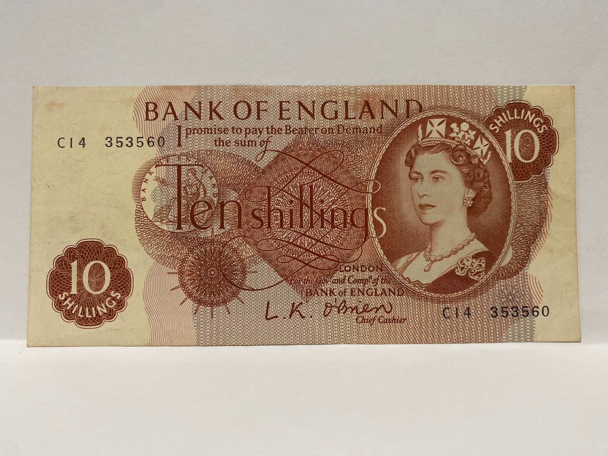 Bank of England Elizabeth II 10 Shilling paper banknote