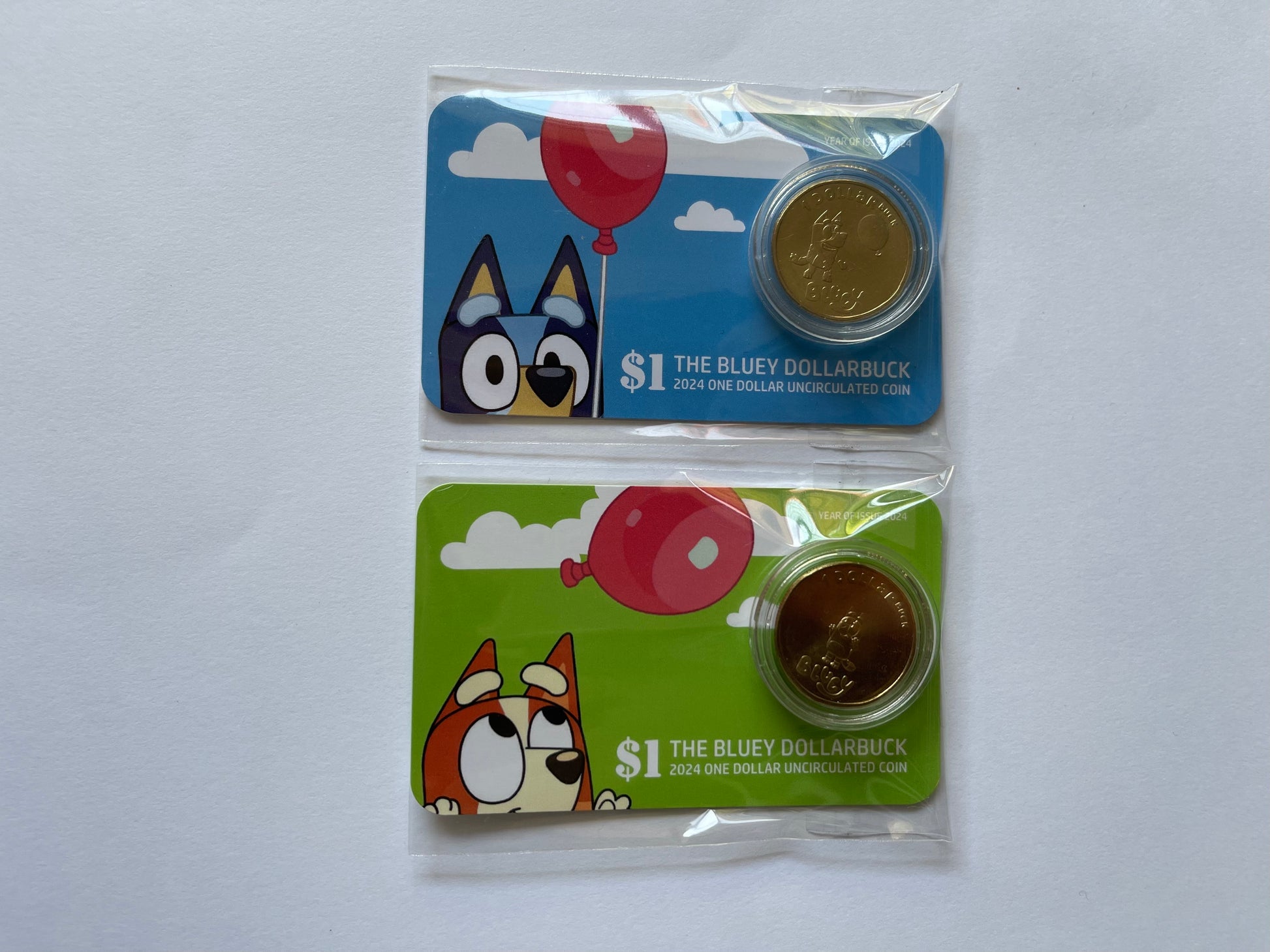 Bluey & Bingo uncirculated $1 coins on custom card - price for the pair