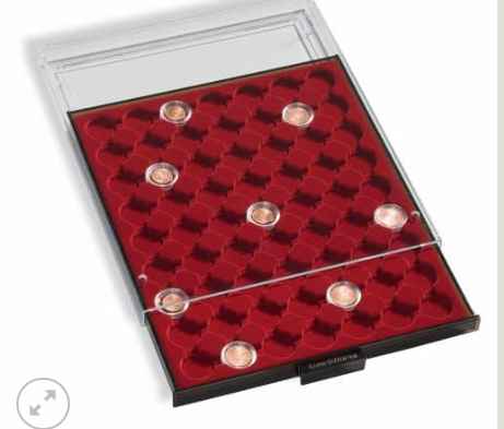 Coin Box 48 compartments for CAPS 21.5, smoke coloured for $2 coins in capsules