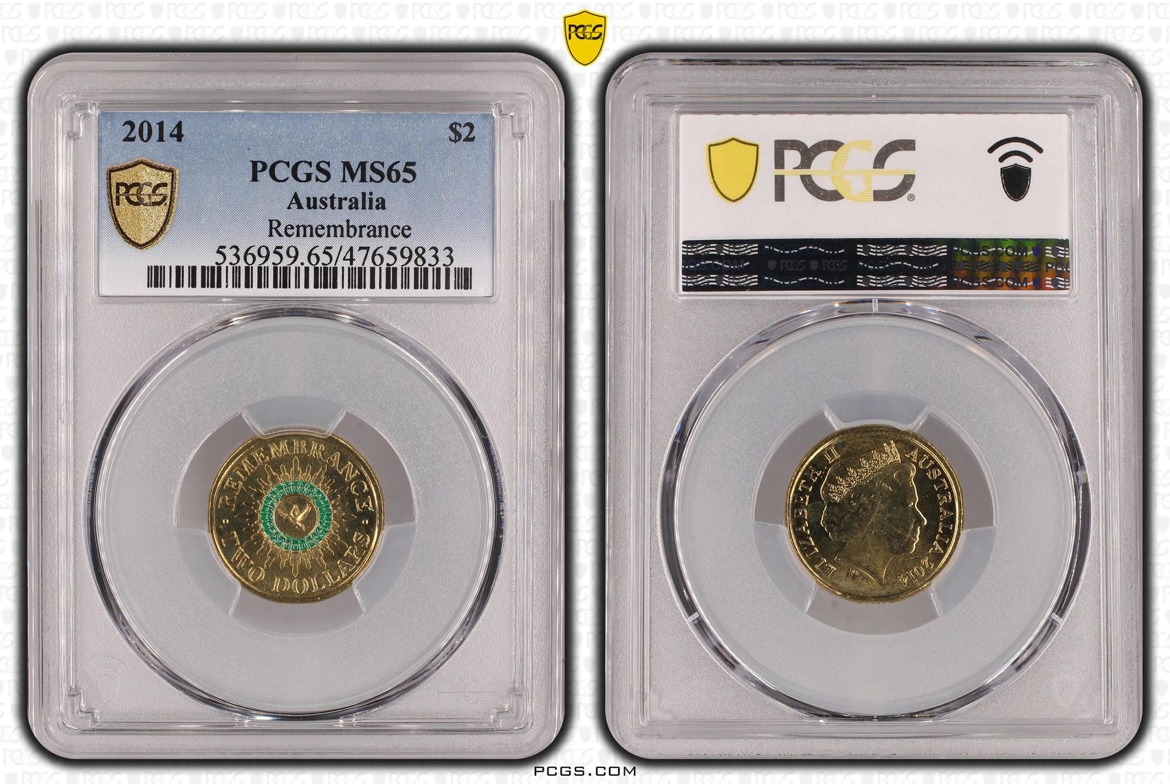 2014 PCGS MS65 REMEMBRANCE GREEN DOVE $2 UNC