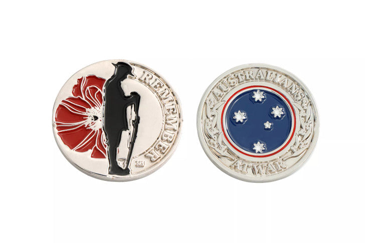 Introducing the Poppy Remember Penny - a touching tribute to the brave sacrifices of our soldiers. This limited edition coin is a must-have for collectors or those wanting to commemorate the service of Australia's men and women in uniform. The Poppy Remember Penny is intricately crafted, featuring a touching depiction of a soldier in the Rest on Arms pose, outlined against a striking red poppy with the inscription 'Remember'. The reverse side displays the Southern Cross against a blue background, with a red circle emphasising 'Australians at War'.