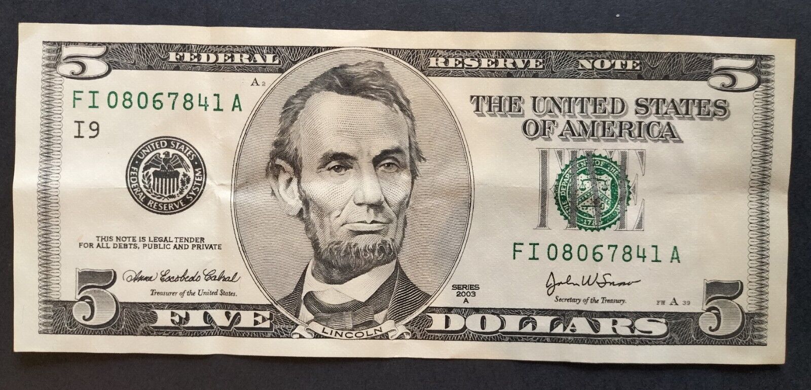 USA Series 2003 $5 Banknote Federal Reserve Note Richmond District - DE31315229A
